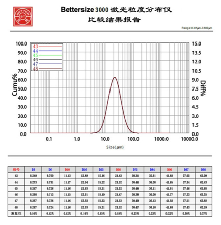 ≤0.5%(国家或国际标样 D50 偏差) |