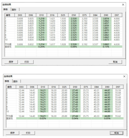 ≤0.5%(国家或国际标样D50偏差) |