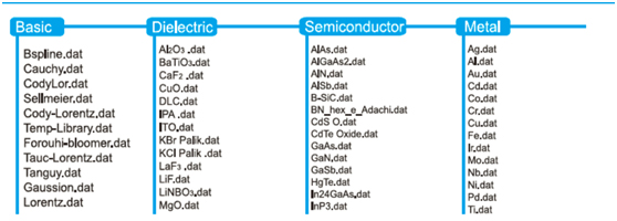 ■ 数百种材料数据库、多种算法模型库,涵盖了目前绝大部分的光电材料。